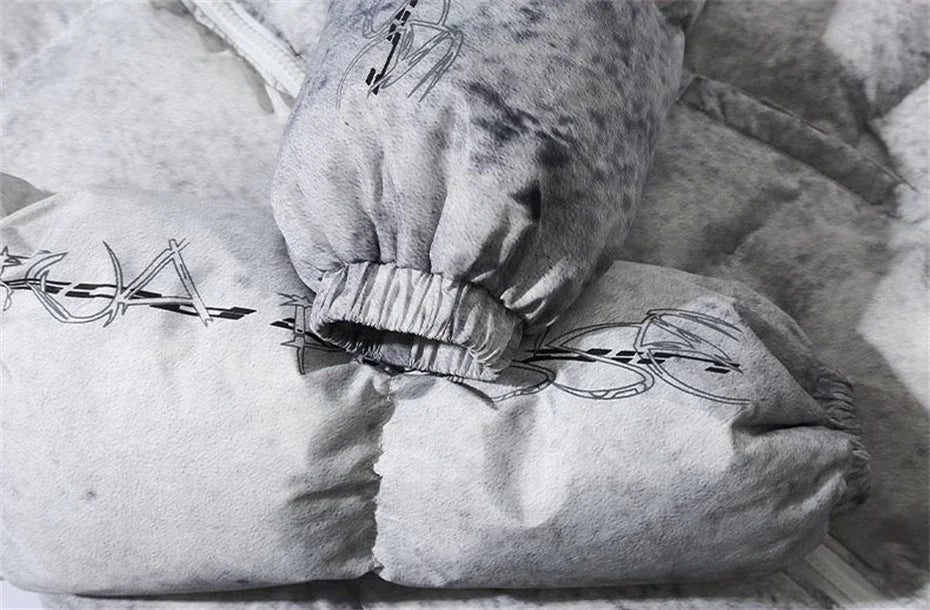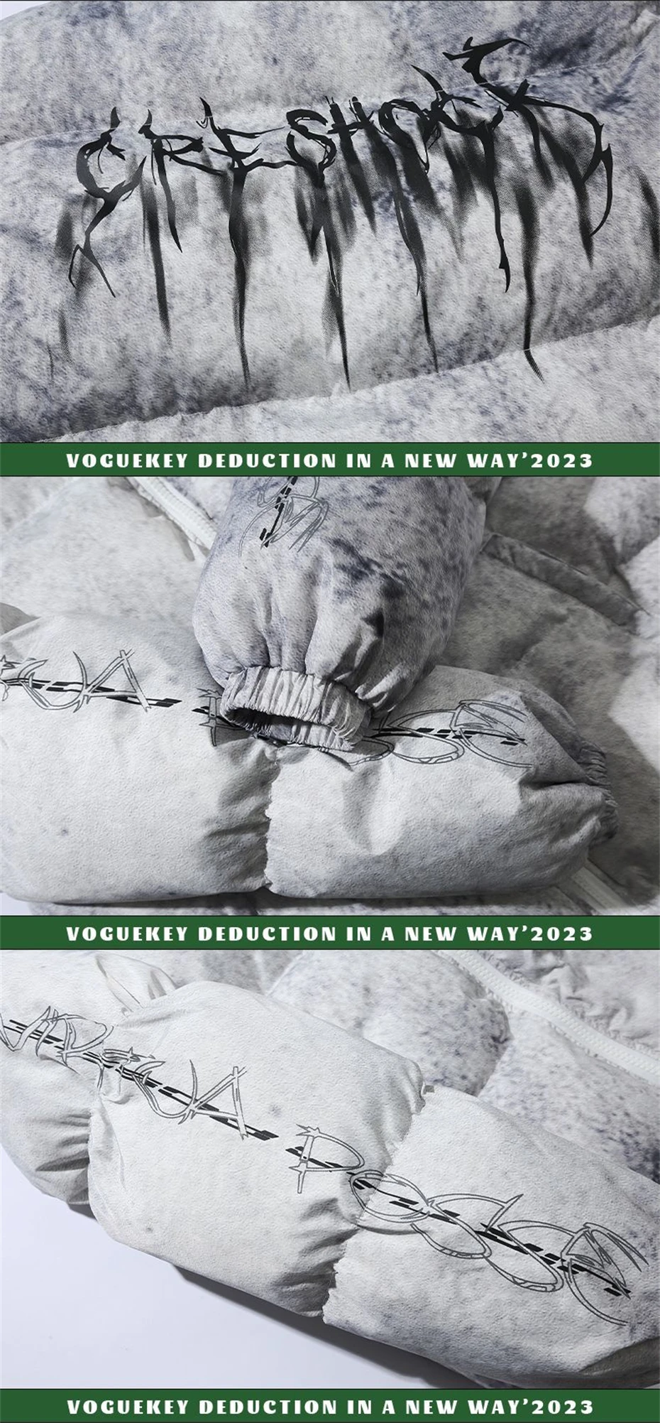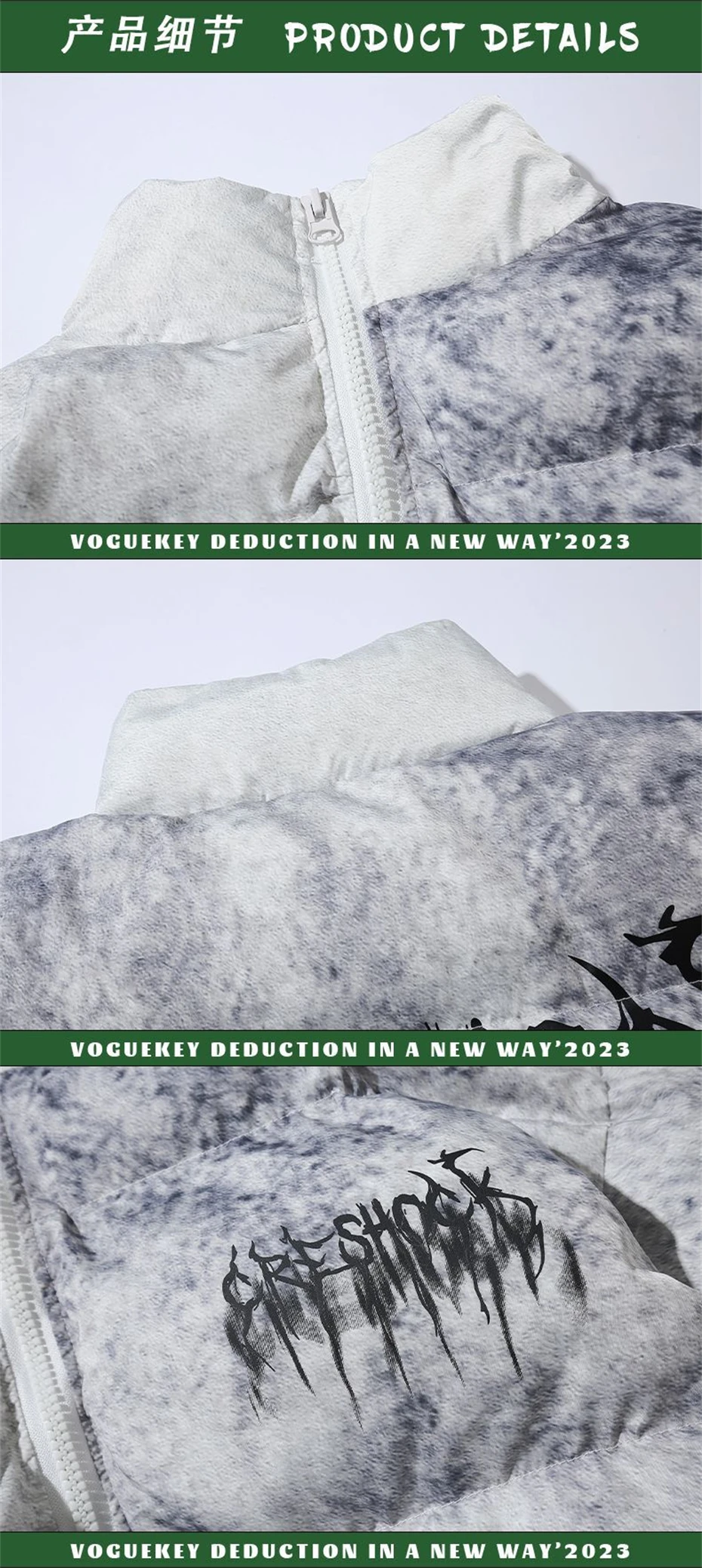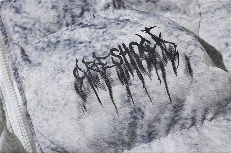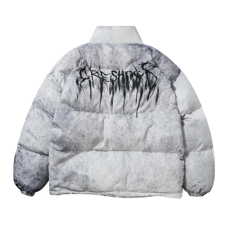 Winter Tie Dye Parka Men Harajuku Thick Padded Jacket Coat Men Oversized Hip Hop Streetwear Letter Print Zip Up Jackets Unisex